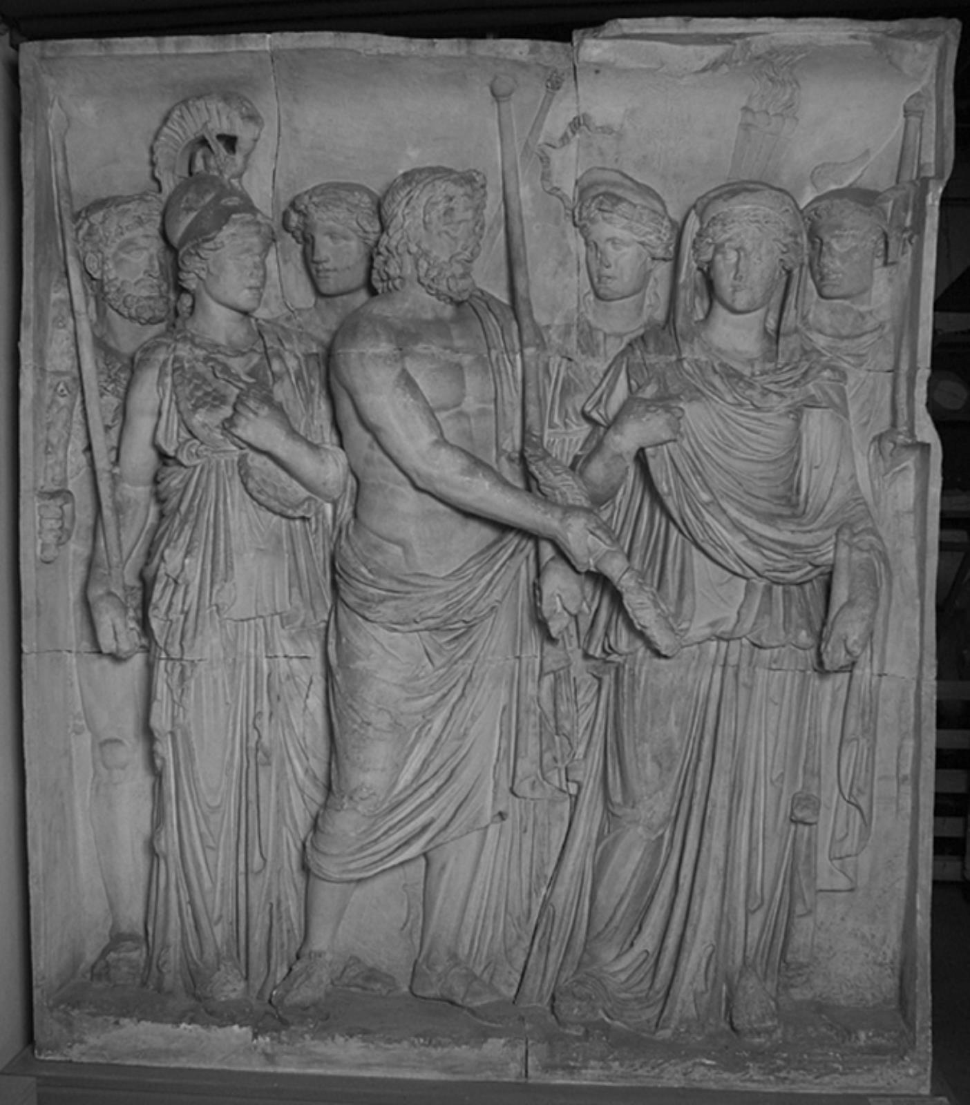 Guderne med Jupiter i midten hilser Trajan ærefuldt by — VisualArtsDB