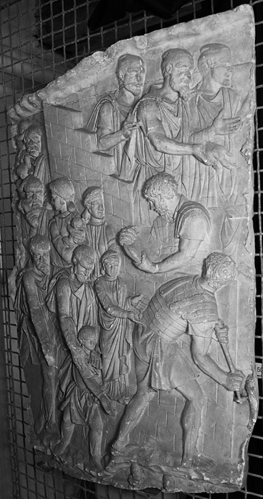Besejrede dakere (mænd, kvinder og børn) overgiver sig, Trajan søjlen by — VisualArtsDB