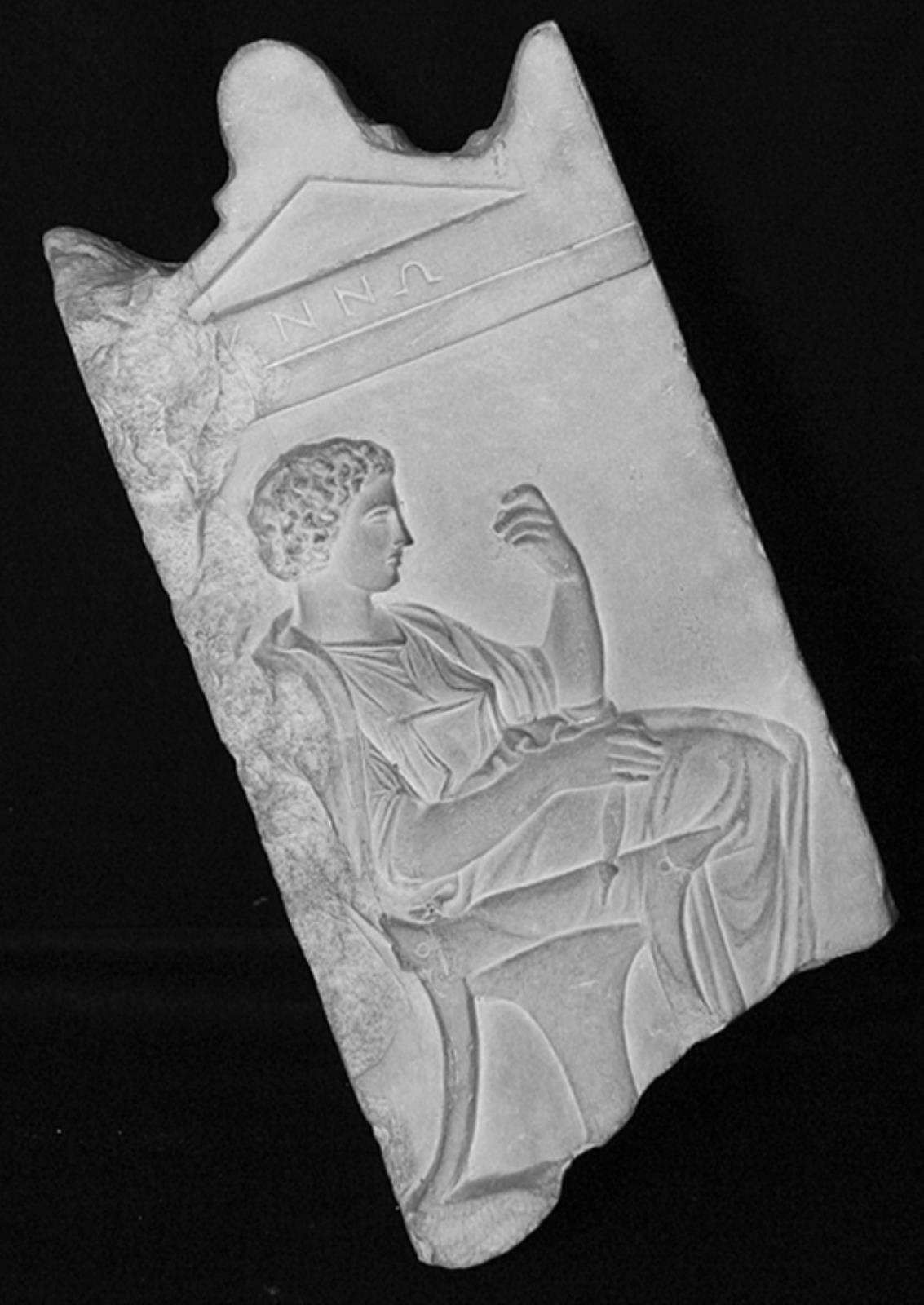 Gravrelief. Gravrelief for Mynno. Siddende kvinde i profil mod højre by — VisualArtsDB