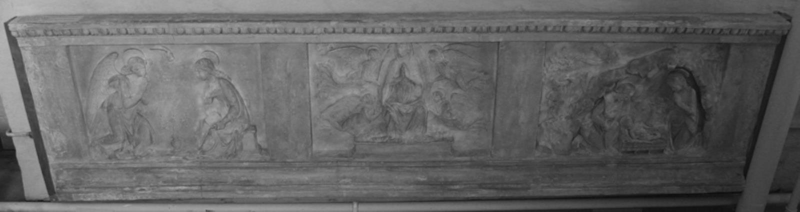 Predella med tre relieffelter: Bebudelsen, Marias himmelfart, Jesus i krybben by — VisualArtsDB