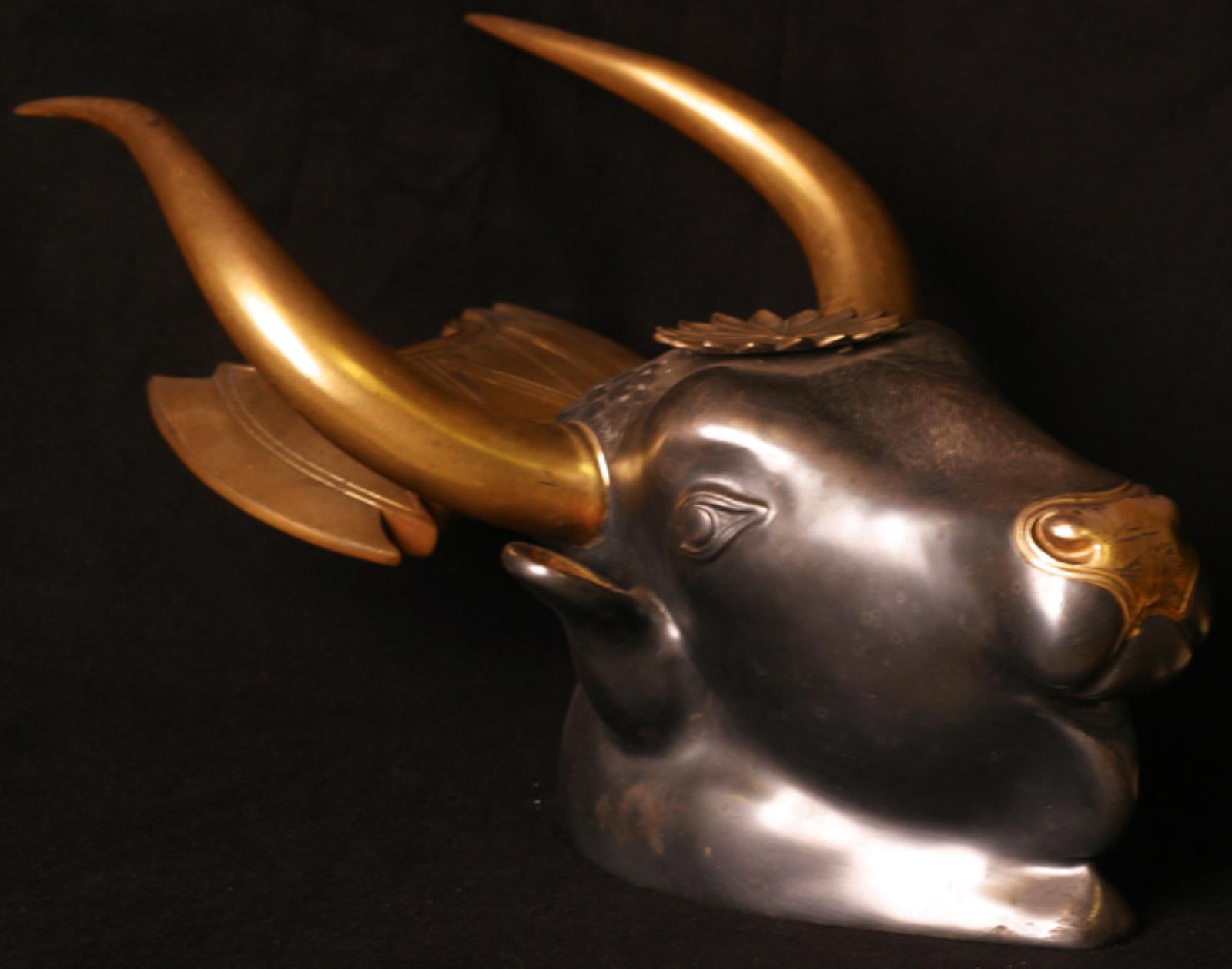 Drikkehorn. Rhyton. Formet som tyrehoved