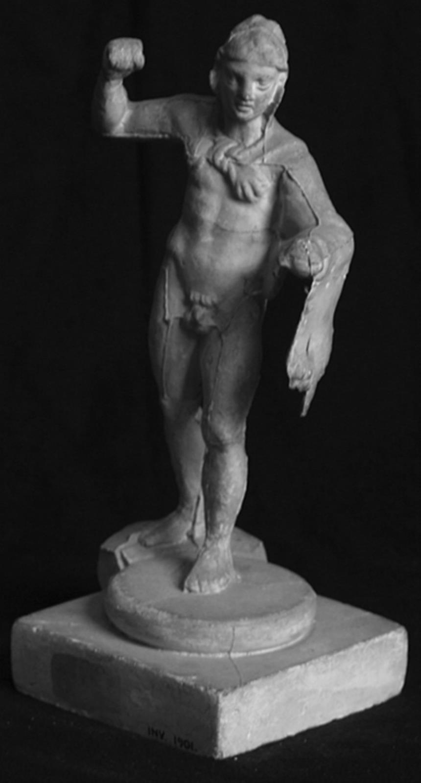 Herakles med løveskindet over v. arm, h. løftet by — VisualArtsDB
