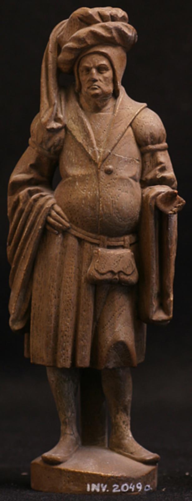 Stående mand i knælang dragt og med hat. H. hånd i siden by — VisualArtsDB