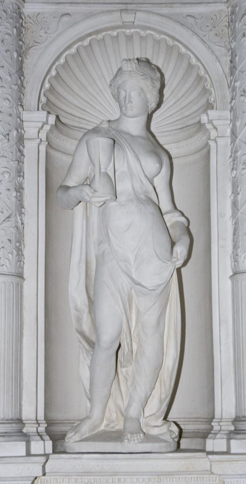 Statue fra kardinal G. Basso della Roveres gravmonument. Kvinde med timeglas, Mådeholdet by — VisualArtsDB