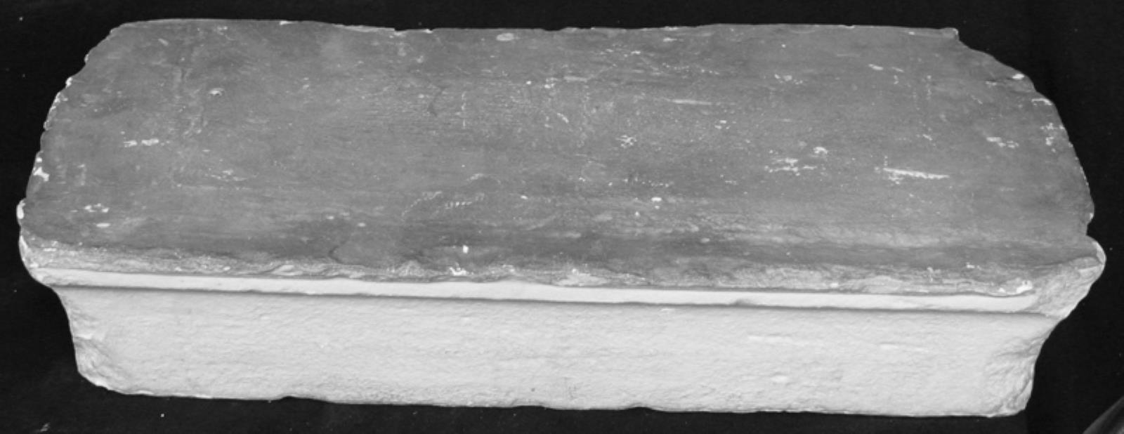 Gammel liggende kvinde fra venstre gavlhjørne, fragment