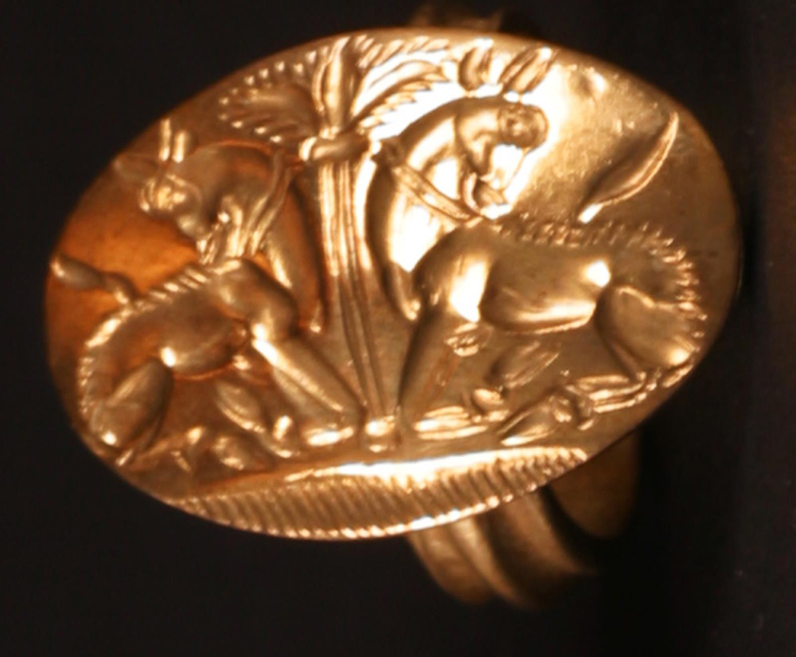 Signetring. Oval. To antitetisk placerede okser by — VisualArtsDB