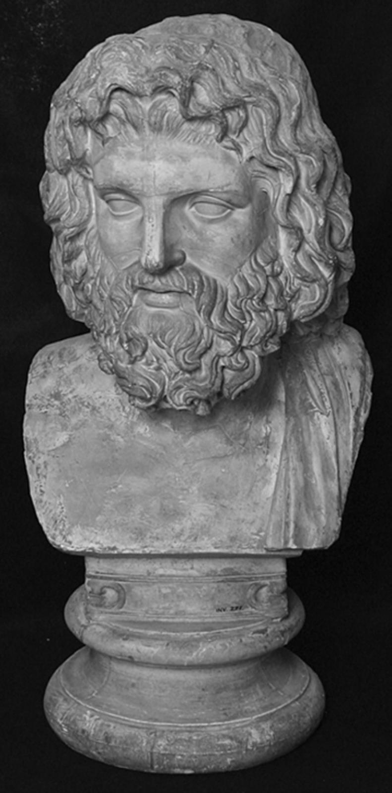 Skægget guddom med hovedet drejet let mod højre, kappe over venstre skulder by — VisualArtsDB