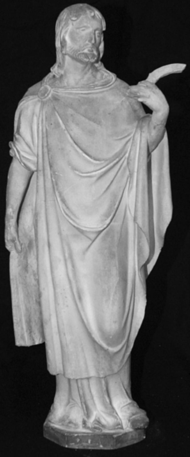 Apostlen Bartholomæus med kniv i v. hånd. 14 statuetter fra St. Sebaldus kirken, Nürnberg, helgenskrin: de 12 apostle, samt portræt af Peter Vischer og St. Sebaldus