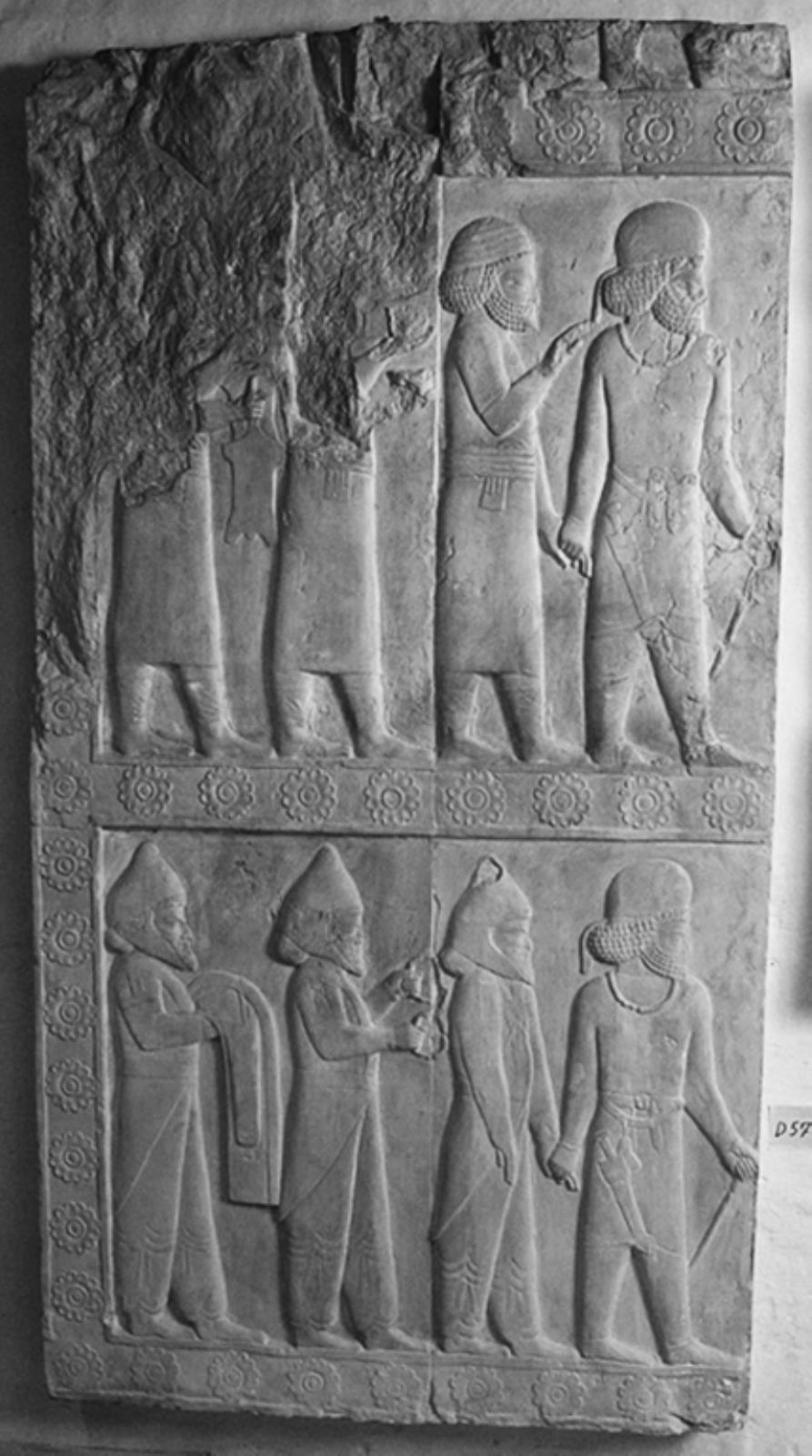 To friser (adskilt af rosettebånd) med tributbærere mod højre ledet af ceremonimester by — VisualArtsDB
