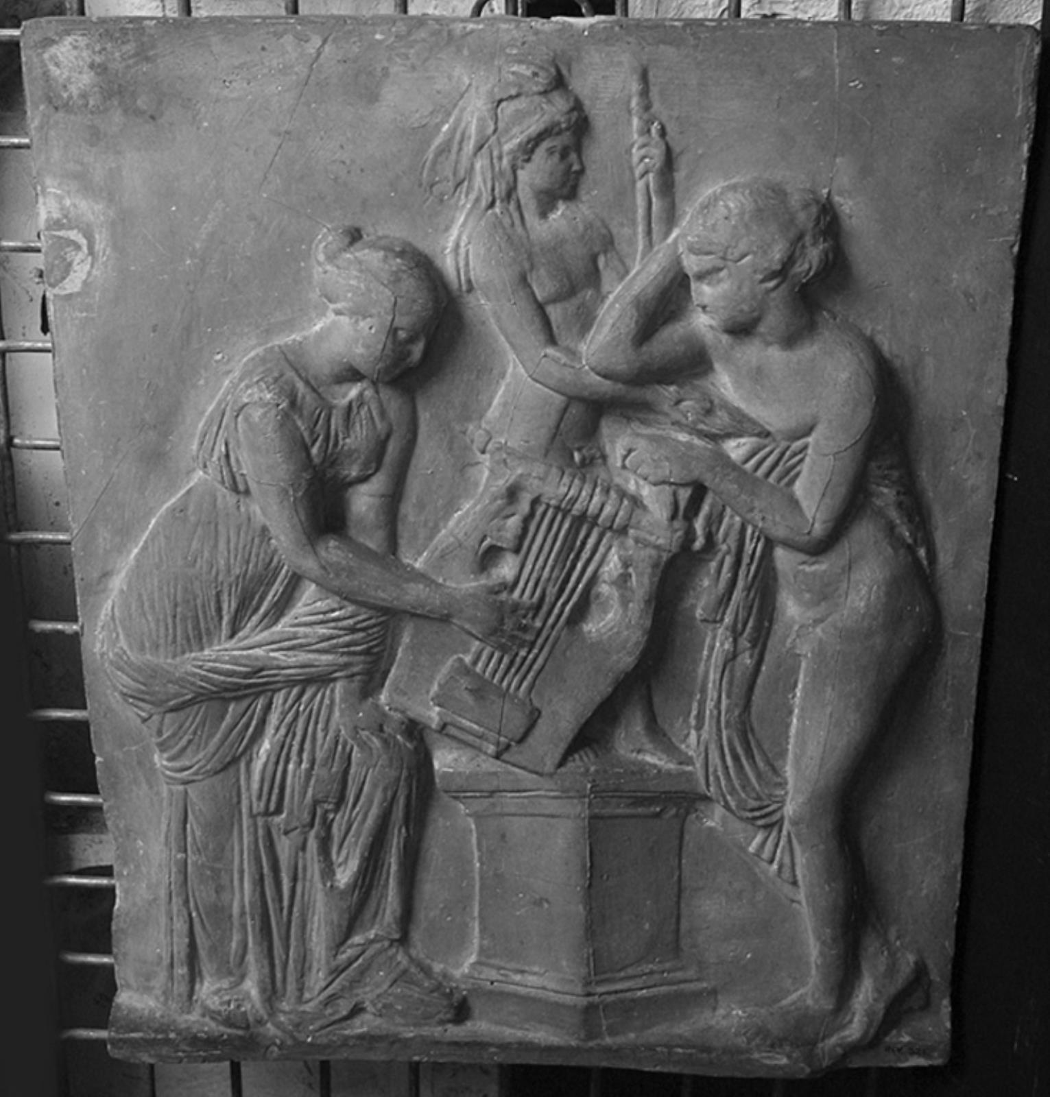 Apollon og muse ved en Apollonstatue på høj sokkel by — VisualArtsDB