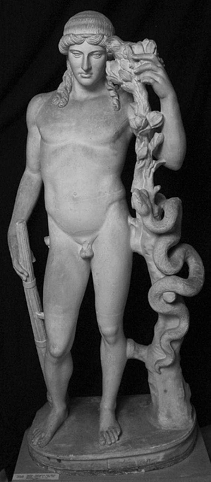 Dødsgenius? med fakkel ved træ med slange by — VisualArtsDB
