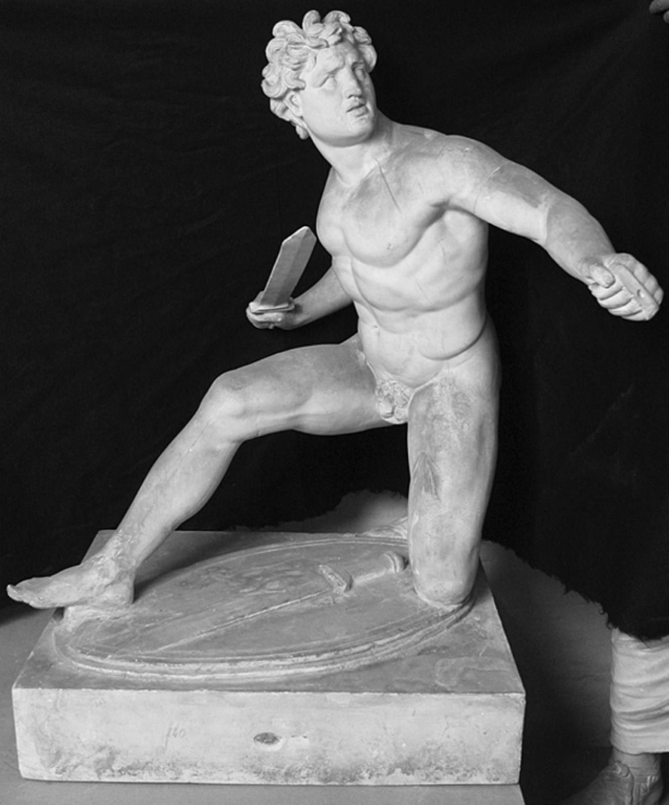 Nøgen galler knælende på skjold by — VisualArtsDB