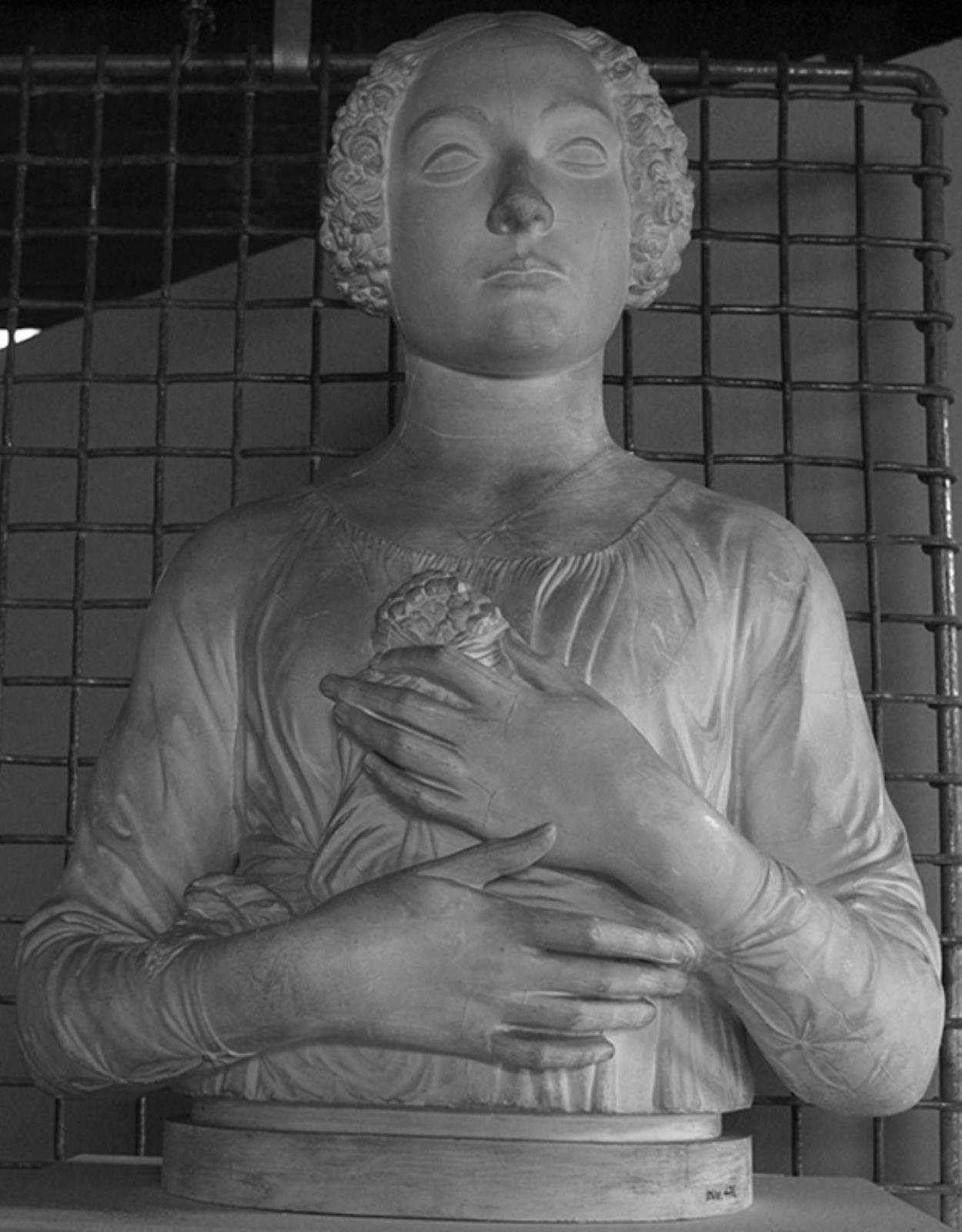 Halvfigur. Ung kvinde med armene ind foran kroppen og blomster i v. hånd by — VisualArtsDB