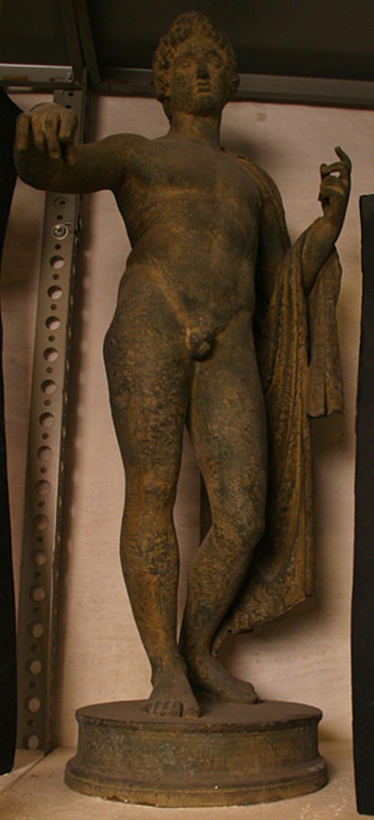 Stående, skægløs mand med kappe over venstre skulder og arm, Apollon by — VisualArtsDB