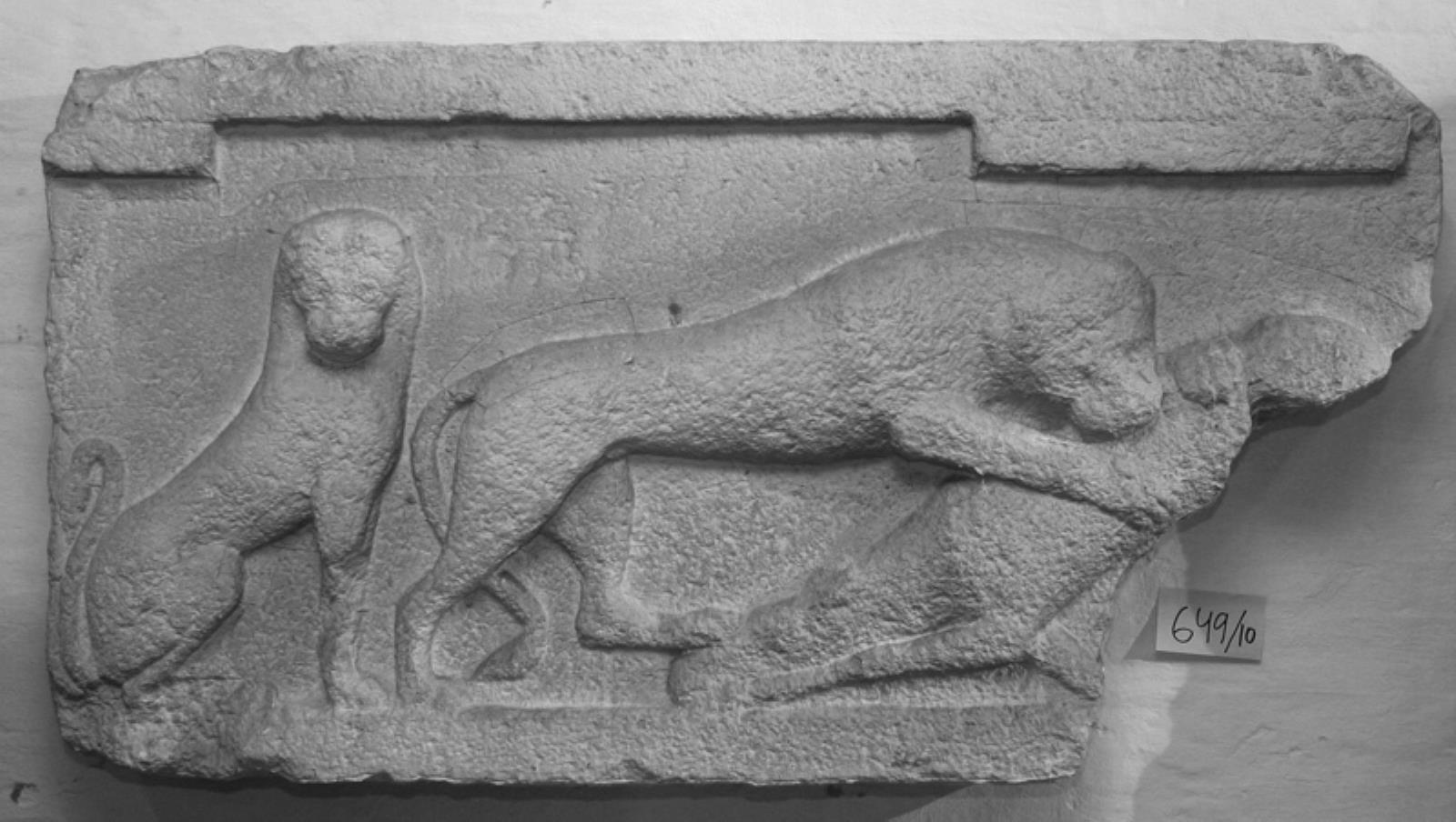 Siddende løve og løve over hjort by — VisualArtsDB