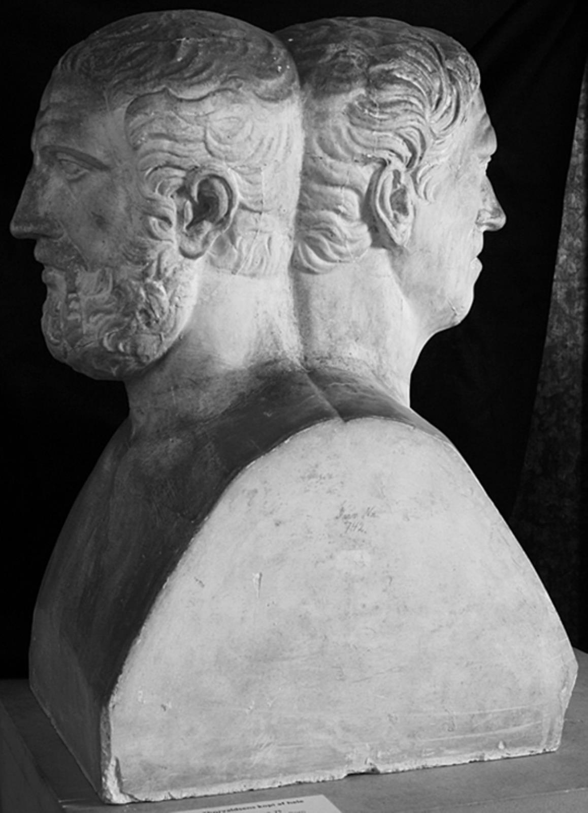 Dobbeltherme. Portrætter af skægget og skægløs mand