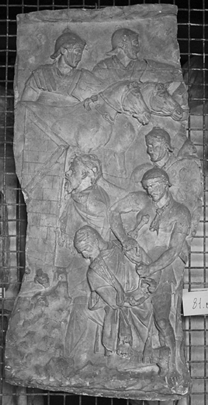 Romerske soldater udenfor lejren. Fangerne bagbindes by — VisualArtsDB