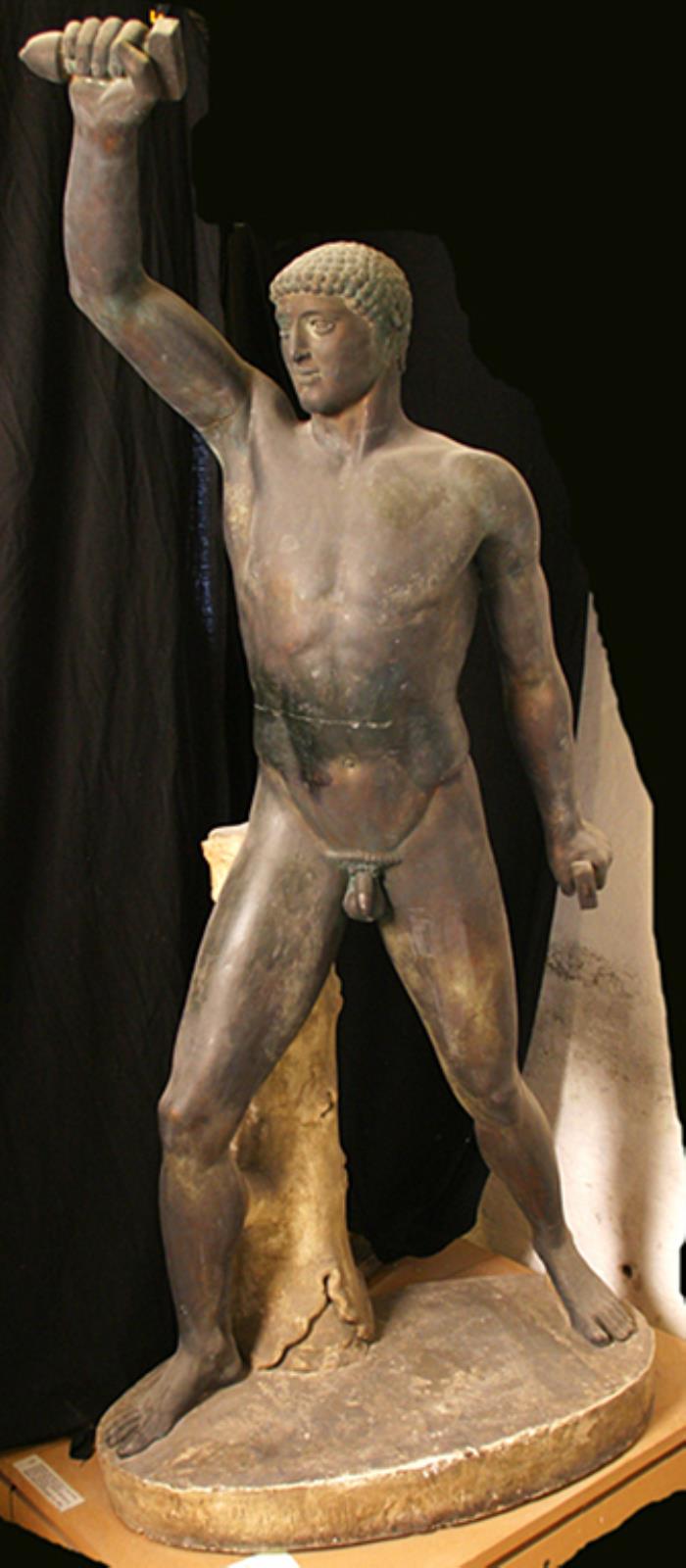 Skægløs ung mand med højre arm løftet, tyranmorderen Harmodios by — VisualArtsDB