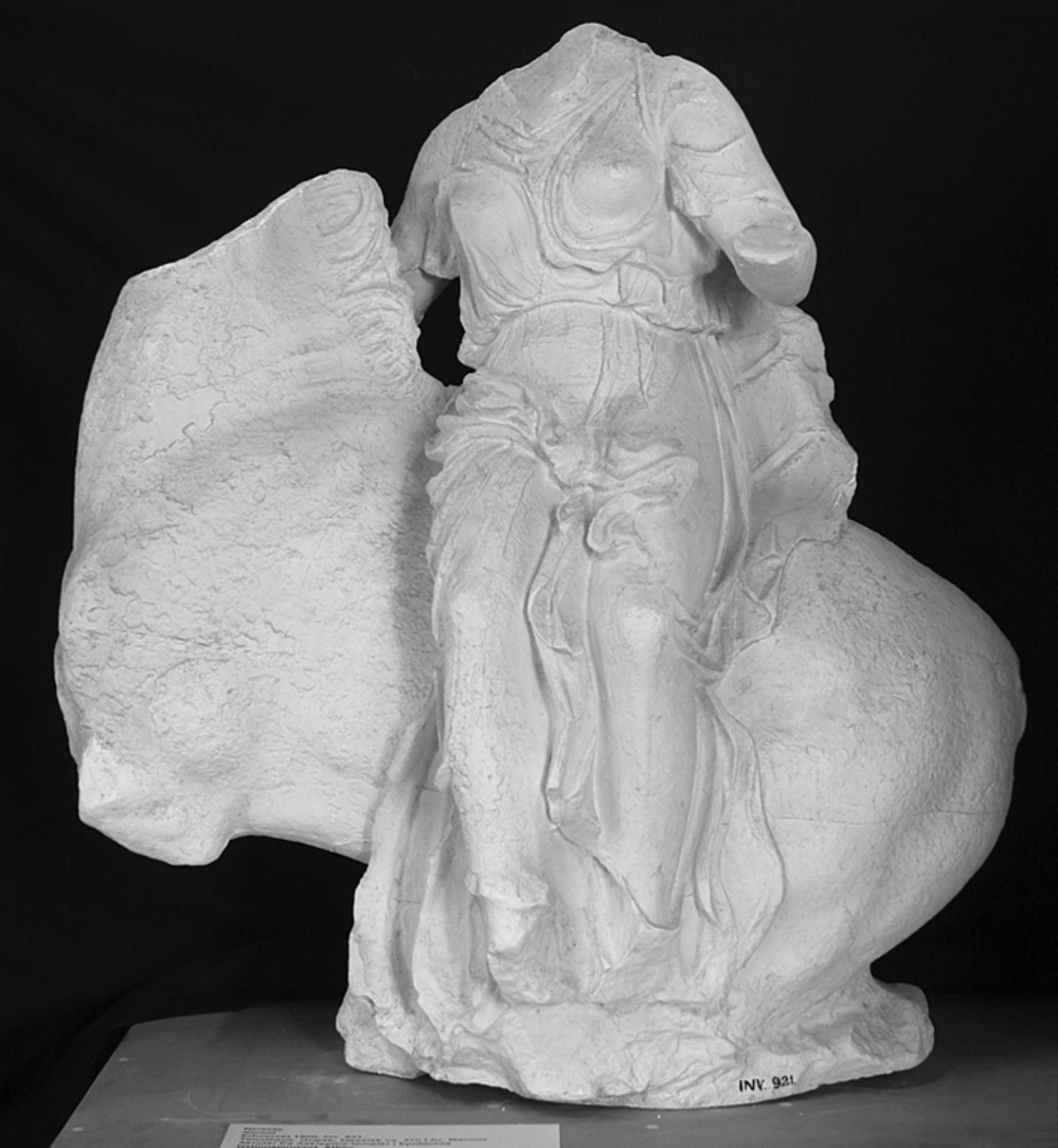 Nereide siddende sidelæns på hest, mod v. by — VisualArtsDB