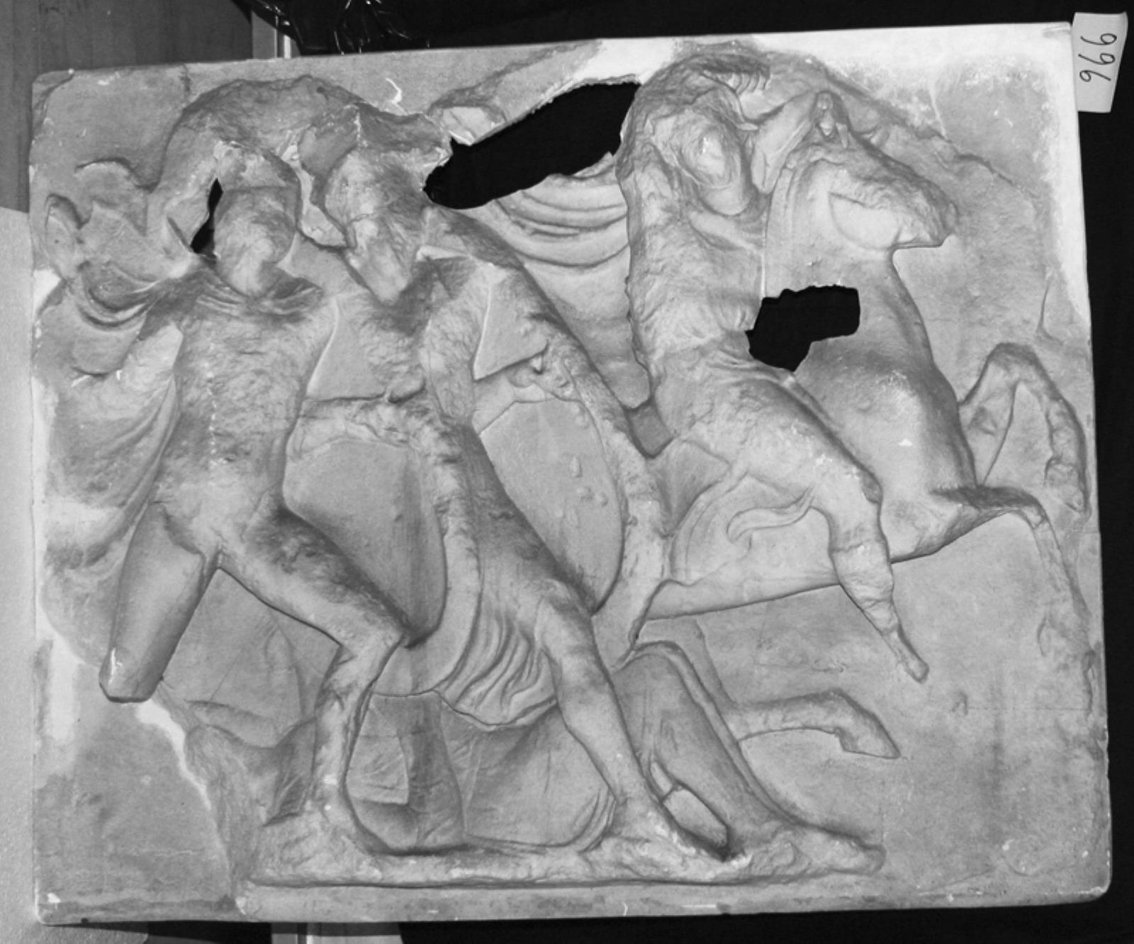 To grækere og persiskklædt rytter mod h. over liggende, død kriger