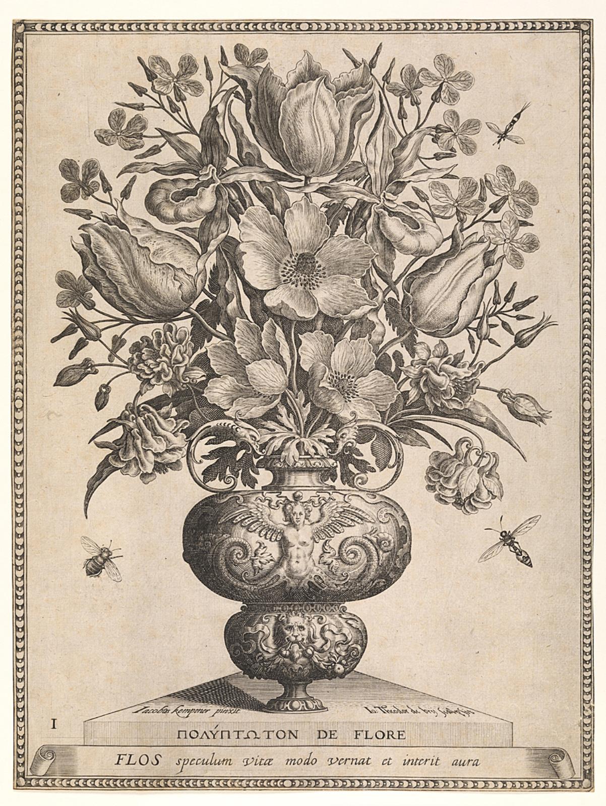 Blomsterbundt i vase by Bry, Jan Theodor de, Kempener, Jacob — VisualArtsDB