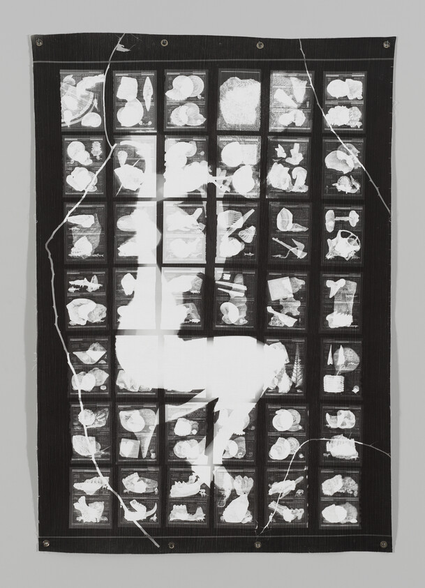Maria Martínez-Cañas, Flight [Hospital Bed]: IV, 1998. Photogram on linen, sheet: 66 × 46 3/4 in. (167.6 × 118.7 cm) Image: 66 × 46 3/4 in. (167.6 × 118.7 cm). Whitney Museum of American Art, New York; gift of the artist and Edna Cardinale in memory of Julie Saul 2025.75